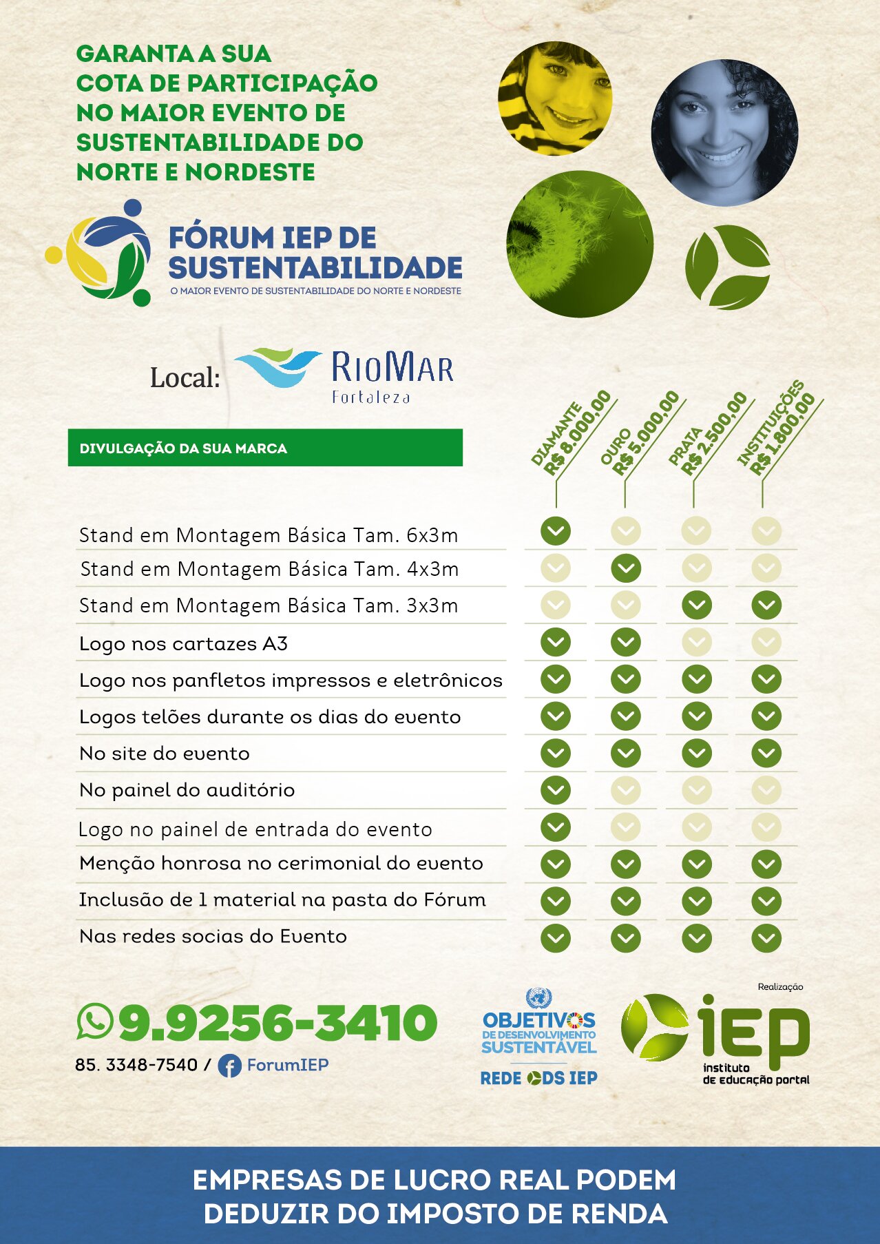 O IEP realiza desde 2007 o Fórum de Sustentabilidade, propondo-se a ser um elo de reflexão permanente entre Governos, empresas privadas, terceiro setor e sociedade civil como um todo. Conclamamos a sociedade a pensar os desafios do nosso tempo e propor soluções a partir de tecnologias sociais inovadoras. Venha fazer parte desta história. Juntos, podemos mudar o mundo!